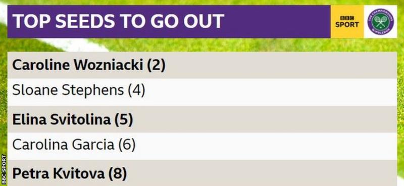 Wozniacki's exit means only world number one Simona Halep, defending champion Garbine Muguruza and seventh seed Karolina Pliskova remain from the top eight in the women's draw.