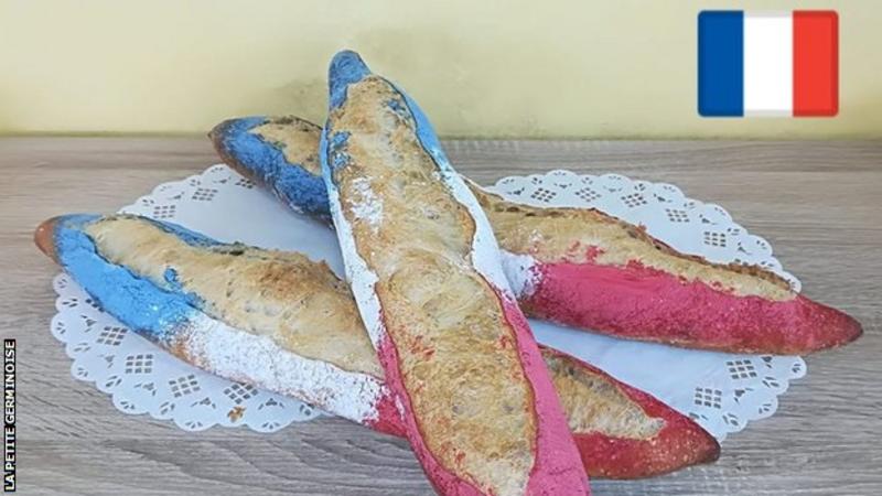 French bakery La Petite Germinoise, near Rennes, has produced limited edition baguettes for Friday's World Cup match against Uruguay