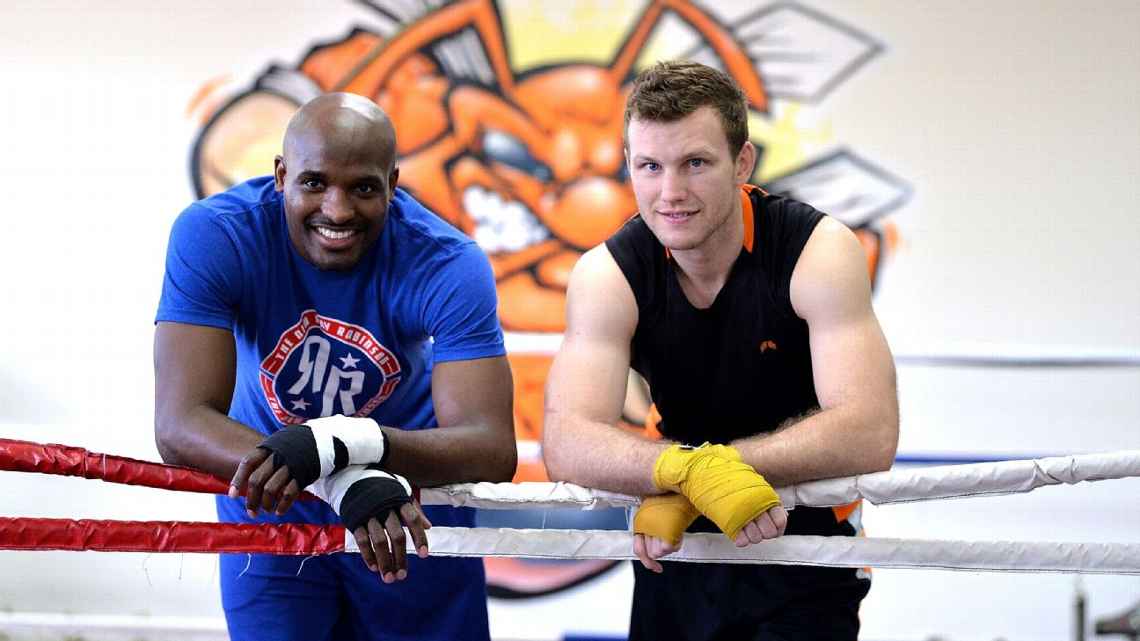 Jeff Horn and Ray Robinson pose for a photo before their sparring session at Stretton Boxing Club. Bradley Kanaris/Getty Images